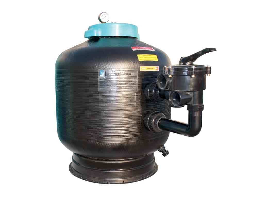 GEMAŞ "TURBIDRON-SL" Yandan Vanalı Kum Filtresi, Yosun ve bakteri oluşumunu azaltan; plastikten mamul kabuk üzerine bobin sargılı, kolay açılır vidalı - geniş ve şeffaf kapak (çap cıvatalı kapaktan 2 cm geniştir), yandan çok yollu vanası ve manometresi ile komple. istendiği takdirde Şltre kumunu net görmek için PiLLi - DOKUNMATİK AYDINLATMA opsiyonu.