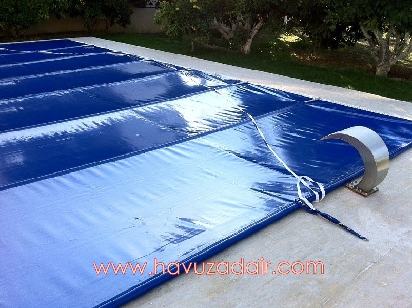Mavi PVC 650 gr/m2. 1,2 - 1,4 m aralıklarla yerleştirilen enine alüminyum barlarla takviye edilmiştir. Elle taşınan sarj edilebilir-redüktörlü 24 V motor yardımıyla havuz üzerine kolaylıkla ve hızla açılır veya toplanır. Bu özelliği sayesinde sezon örtüsü olarak rahatlıkla kullanılabilir. Çocuk ve evcil hayvanlar için güvenli bir örtüdür. Rüzgarlı ortamlarda yan takviyelerle sabitleme sağlanır. Amorf veya düzensiz şekilli havuzlarda örtü formu dörtgen olmak zorundadır. Kısa kenarlardan 25’er cm, uzun kenardan 50’şer cm pay düşünülmelidir.