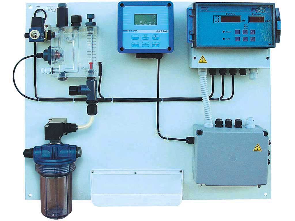 Amperometik klor ve pH elektrodu ile komple pano üzerine montajlı. Yıkanabilir filtreli, IP65 korumalı, 4-20 mA sinyal çıkışlı, ppm (=mg/l) olarak bakiye klor ve pH ölçüm ve kontrol sistemi.